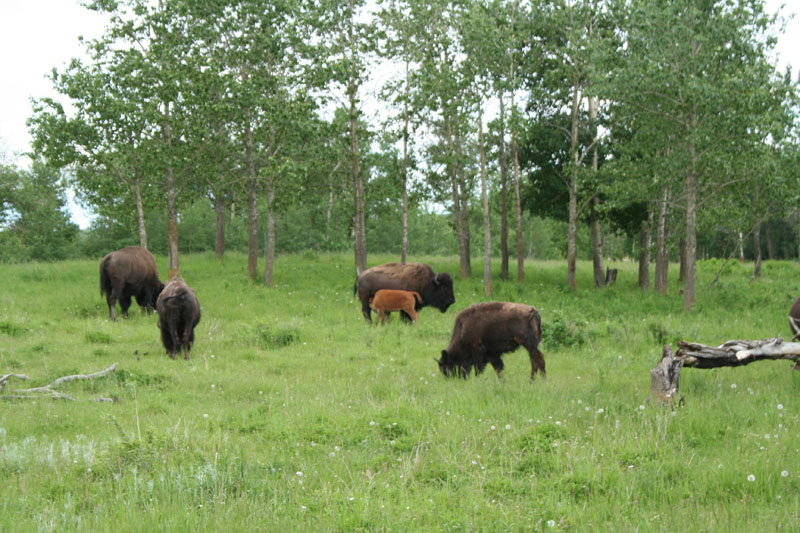 Oddly, the herd of bison do not stop munching on grass to deliver shocked and reproachful glares when a baby buffalo needs buffalo numnums.