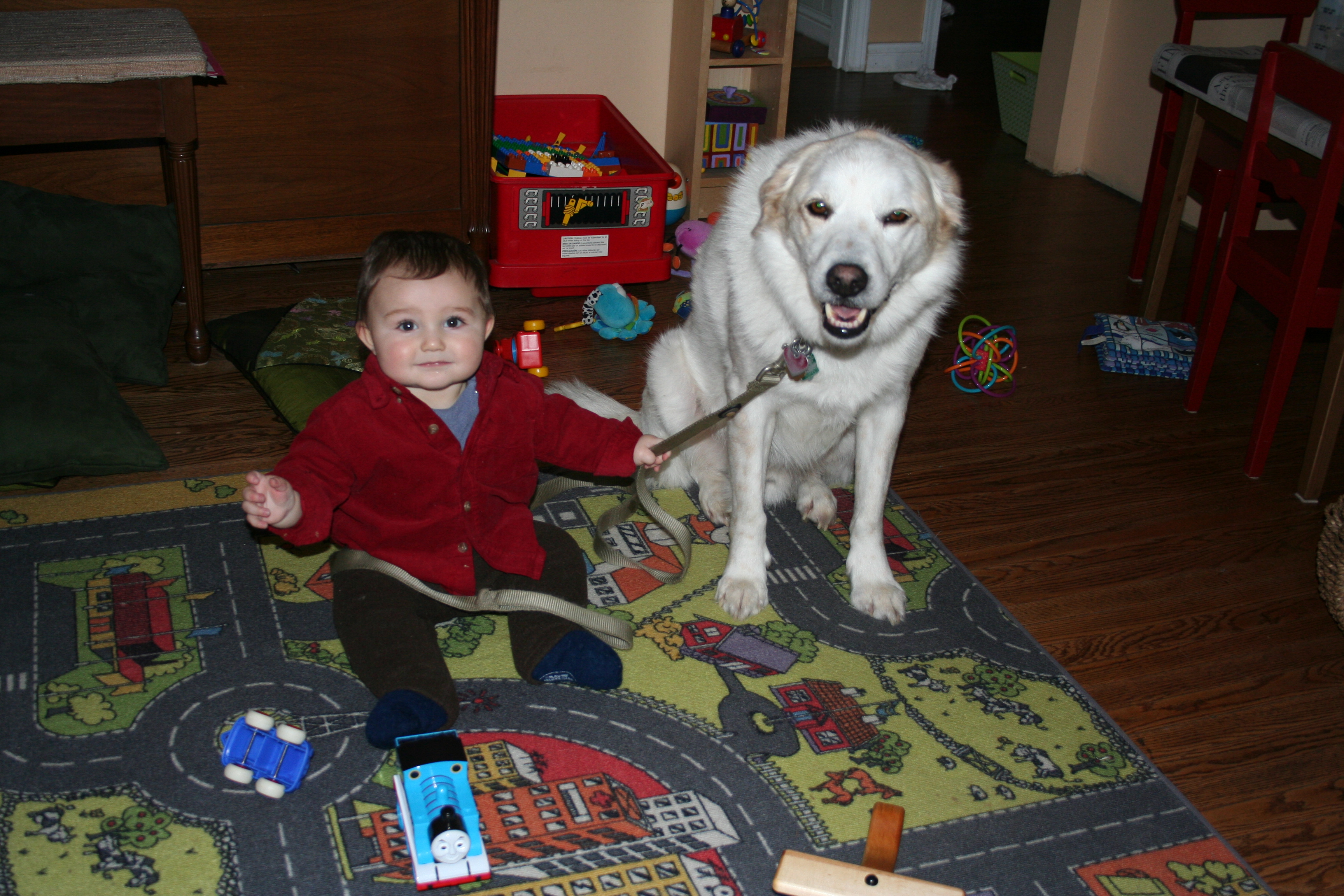 Kids are fun, and so are dogs, and so they get along. They find lots of things to be in cahouts about. Oliver’s cry has always been of a particular pitch to set Gus howling. And so when I’d do something mean, like insist on no chocolate milk for breakfast, Oliver would cry and Gus would too so that the house would be full of the most mournful wails and doleful eyes. Other times they’d quietly set to emptying a box of milkbones until the silence would alert me.